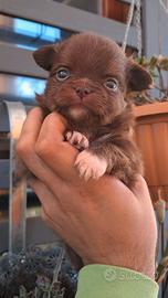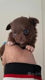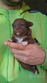 Disponibile su prenotazione cucciolo di chihuahua cioccolato. Verrà ceduto con sverminazione vaccinazioni microchip libretto sanitario certificato di buona salute e pedigree enci. La richiesta è di 1000 non trattabili Peso da adulto di massimo 2 kg Possibilità di arrivare in tutta Italia con trasportatore autorizzato asl