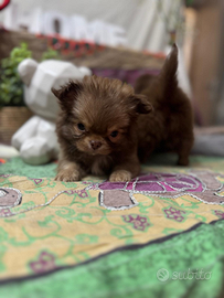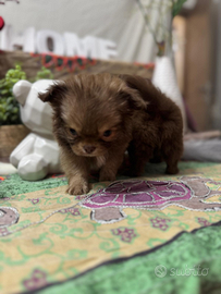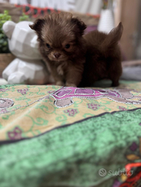 Cucciolo di chihuahua con pedigree Maschio ,colore cioccolato Verrà consegnato con pedigree enci Sverminato Primo vaccino No perditempo e sognatori