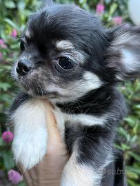 Chihuahua maschio Pelo lungo,tricolore Pedigree Microchip Sverminato Libretto Tutto info in privato