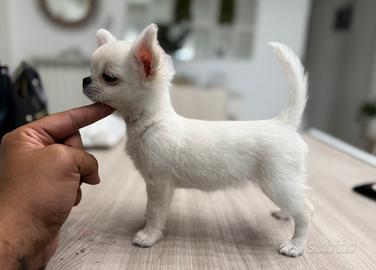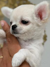 Cucciola di chihuahua con pedigree enci da allevamento riconosciuto.