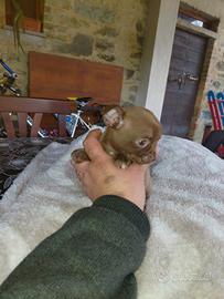 Cucciolo femmina di chihuahua taglia piccola sverminata vaccinata con libretto sanitario microchip e pedigree genitori visibili di mia proprietà prezzo 850 euro verrà ceduta dal 25 marzo al compimento dei 70 giorni chi fosse interessato mi contatti al numero di telefono 3347570739 o tramite wazzap jonny