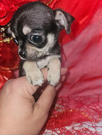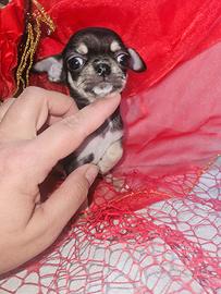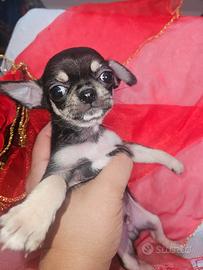 Disponibile in Allevamento cucciola di chihuahua tricolore nero/bianco/crema che si consegna adue mesi, a marzo. Consegna effettuata di PERSONA in tutta ITALIA.