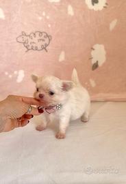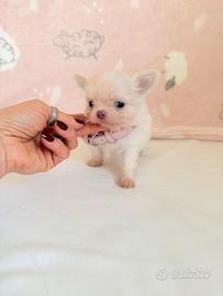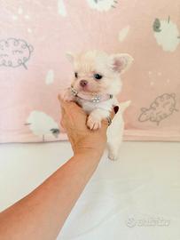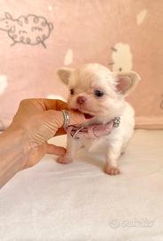 CIPRIA chihuahua femmina a pelo lungo ,colore bianco. Nata il 23/02/2026 disponibile dal 24 aprile. Vaccinata e sverminata con microchip e pedigree Enci . Kit cucciolo in omaggio. Per ulteriori informazioni contattare telefonicamente e non per messaggio .Grazie