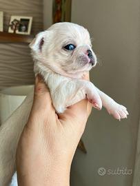 Disponibile chihuahua Femminiccia ipertipica linea russa musetto schiacciato zampa corta genitori con prestigioso pedigree enci.la piccola verrà consegnata svezzata sverminata vaccino puppy libretto sanitario e certificato veterinario di buona salute.ci troviamo in Sicilia ma facciamo consegne in tutta Italia con mezzo autorizzato e specializzato ASL.prenotabile con acconto.no perditempo grazie.