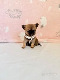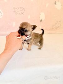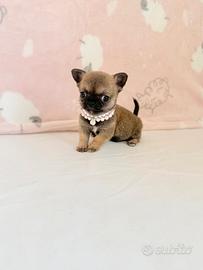 GIULY chihuahua femmina a pelo corto ,colore fulvo carbonato. Nata il 19/02/2026 disponibile dal 20 aprile. Vaccinata e sverminata con microchip e pedigree Enci . Kit cucciolo in omaggio. Per ulteriori informazioni contattare telefonicamente e non per messaggio .Grazie