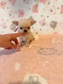 GIADA chihuahua femmina a pelo corto ,colore crema. Nata il 3/03/2026 disponibile dal 4 maggio. Vaccinata e sverminata con microchip e pedigree Enci . Kit cucciolo in omaggio. Per ulteriori informazioni contattare telefonicamente e non per messaggio .Grazie