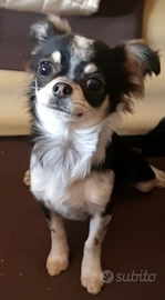 Cucciola di 8 mesi,a pelo lungo,bicolore, disponibile con microchip, vaccini e trattamenti antiparassitari. Tutto in norma. Taglia standard.