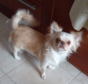 Cedo chihuahua femmina di 2 anni a pelo lungo, sverminata, vaccinata con microchip la cagnolina assolutamente sana , non abbaia, affettuosa, solo per una signora anziana con il giardino privato.
