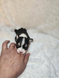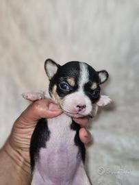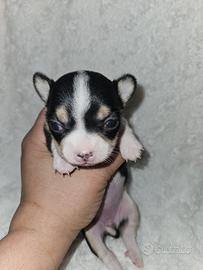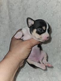 Disponibile alla prenotazione bellissima cucciola di chihuahua nano tricolore a pelo corto maschera nera. La piccola verrà ceduta al compimento dei due mesi con doppia sverminazione, primo e secondo vaccino, libretto sanitario e visita veterinaria, abituata al telo igienico, trattamento antiparassitario, microchip con relativo passaggio di proprietà all'ASL veterinaria e PEDIGREE ENCI. Sarà socializzata con altri cani e gatti e crescerà in ambiente familiare giocando con bambini. NON È ASSOLUTAMENTE IN REGALO ALLEVAMENTO CUCCIOLISOLE anche whatsapp al 329 6954062