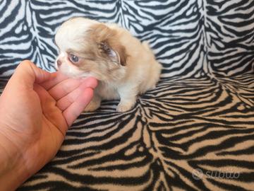 Chihuahua femmina pelo lungo Biqnco lilac occhi azzurri testa a mela zampa corta colorazione magnifica ... Nome macchia 70 giorni Pelo foltissimo una nuvola di pelo . La cucciola ha un carattere meraviglioso... Una vera meraviglia di madre natura dimensione mini Viene consegnata con : * Vaccinazione *Sverminazzioni completate *Microchip Italiano no (estero) * Certificato medico di buona salute *Kit alimentazione specifico Per ulteriori informazioni contattare Al 327 95 49 884 Giuseppe