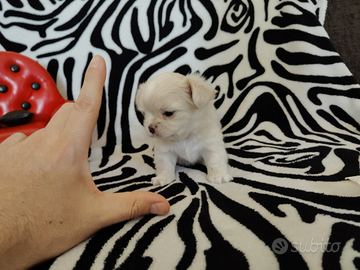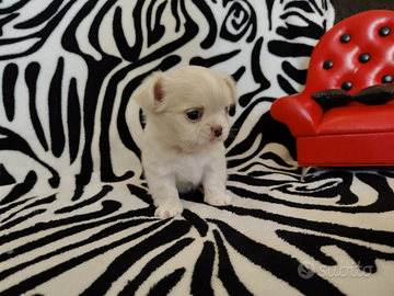 Chihuahua femmina pelo lungo champagne e bianco ... Occhi chiari .