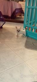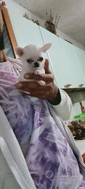 Cucciola di chihuahua femminuccia bianca,piccola taglia, testolina a mela musetto corto,ottima genetica. Bianco gemma, Magicollection,del pasador, Rio de Galeria,dolce mela. Genitori entrambi visibili sul posto. La cucciola viene cresciuta in ambiente familiare al contatto con bimbi quindi ben socializzata al contatto umano, ed abituata ad interagire all'uso delle traversine. Può arrivare in tutta Italia con staffetta autorizzata costo a carico dell'acquirente. Viene ceduta con 3 cicli di sverminazione con drontal cucciolo Visite mediche Libretto sanitario Vaccino Microchip Antipulci Nuovamente sverminata per diverse volte con Wormax a pillola Analisi feci Svezzata con Royal Canin mini starter Per ricerca cuccioli di Spitz Pomerania contattami. Do e chiedo massima serietà no curiosi e perditempo grazie.