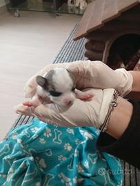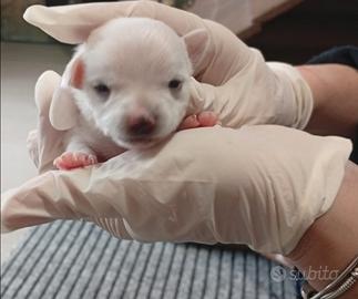 ? Splendidi Cuccioli di Chihuahua a Pontecorvo (FR) Disponibili 5 meravigliosi cuccioli di Chihuahua nati il 21 marzo e cresciuti in un amorevole ambiente familiare. La cucciolata è composta da: 3 Maschietti ? 2 Femminucce ? I piccoli sono il frutto dell'incrocio tra mamma (testa di cervo) e papà (testa di mela). Entrambi i genitori sono visibili in loco. ? Salute e Consegna I cuccioli verranno ceduti solo dopo il completamento del ciclo di svezzamento (al termine dei 60 giorni previsti per legge), garantendo così una crescita sana e un corretto equilibrio comportamentale. Saranno consegnati: Già sverminati. Con relativi controlli veterinari effettuati. ? Dettagli Prezzo: 300 € Luogo: Pontecorvo (FR) ? Per informazioni e appuntamenti: Non esitare a contattare Mikael per ricevere ulteriori foto, video o per venire a conoscerli di persona. Telefono: 338 9933911