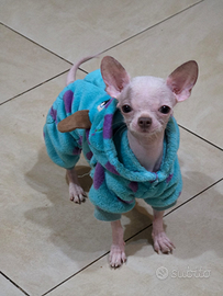 Disponibile chihuahua hairless un esemplare unico nella sua bellezza nudino mini di 900 grammi. Con salute ottima carattere molto dolce e coccoloso. Munito di microchip ciclo vaccinale fatto e se necessario puo essere sterilizzato. Una razza ancora poco conosciuta nel mondo perche stata registrata ufficcialmente solo un anno fa. Raza di cagnolini che non necessita di grumming, lavaggi e convive felicimente con gatti e bambini. Se cercate un cucciolo da compagnia questo maschietto sara scelta ideale. Lui ha 6 mesi e pronto di trasferire in una nuova famiglia amorevole