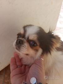 Stallone di chihuahua linea Russa per monta bianco tricolore a pelo lungo con pedigree ENCI x info contattami