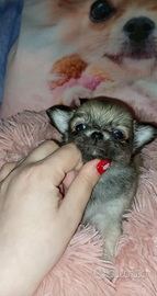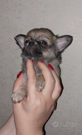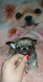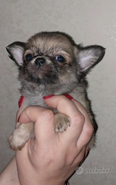 Chihuahua pelo lungo maschietto pedigree enci richiesta 800€....caratteristiche di questa colorazione carbonato che in età adulto il piccolo assumerà un colore del manto chiaro come vedete nel sottopelo....sul crema/champagne. . ..bellissimo molto espressivo tipicità di razza corretto al momento in standard....taglia piccina....una vera mignatura di amore e dolcezza per lui contatta 3248679778....