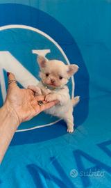 TEODORO chihuahua maschio a pelo lungo ,colore cipria. Nato il 23/02/2026 disponibile dal 24 aprile. Vaccinato e sverminato con microchip e pedigree Enci . Kit cucciolo in omaggio. Per ulteriori informazioni contattare telefonicamente e non per messaggio . Grazie