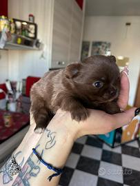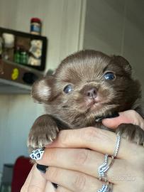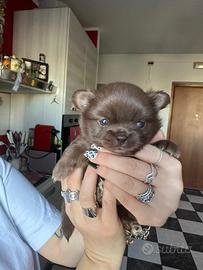 Chihuahua cucciolo cioccolato a pelo lungo , tenerissimo e molto coccolone , veramente stupendo !!! Il cucciolo verrà consegnato con i suoi documenti, pedegree enci , vaccino vermifugo e libretto sanitario e certificato di buona salute Il cucciolo verrà consegnato hai 60 giorni non prima ,