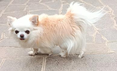 Si cede Chihuahua pelo lungo, adulto nato il 30 giugno 2021, pedigree, testato per : patologie oculari clear, cuore ecocardiocolordoppler perfetto, lussazione della rotula assente, DNA per patologie ereditarie della razza, atrofia progressiva della razza clear. Cane sano, affettuoso e molto bello. No allevatori, solo da compagnia. Si cede dietro rimborso spese. Telefonare al 340 0574526.