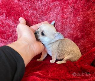 Chihuahua maschio stupendo pura razza. taglia mini Toy? il cucciolo ha 70 giorni e sano affettuoso giocherellone La consegnamo con Microchip Libretto veterinario Vaccino svermata Controllo veterinario completo con dichiarazione di pertetta salute Documenti di cessione a vostro nome Il piccolo è abituato a traversa e crocchette... Per video e foto contattare al 3881529338 grazie