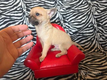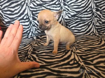 Chihuahua maschio Fulvo carbonato pelo raso... muso inesistente zampa corta con un carattere unico Nome : spillo I cuccioli vengono consegnati da 60/90 giorni di vita .. Perfetta a livello morfologico bellissima testa a mela zampa corta stop perfetto muso inesistente ... e vengono consegnati con: vaccinazione ,sverminazzioni ,microchip, libretto sanitario. e certificato di buona salute rilasciato dal medico veterinario dopo accurata visita medica. Esenti da malattie ereditarie di altissima morfologia genitori garanzia sanitaria sulla salute e assistenza post vendita kit alimentazione specifico per la razza Per qualsiasi info contattare al 327 9549884 Giuseppe GRADITO CONTATTO TELEFONICO
