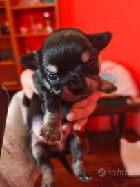 DISPONIBILE CUCCIOLO CHIHUAHUA DISPONIBILE MANTO NERO LUCIDO SUPER SUPER BELLO ALLEVATI IN CASA COME FIGLI sono 4 maschi li do vaccinati e sverminati pronti per il 9 aprile visibili a casa compreso i genitori che ho messo in foto mamma pelo lungo testa di leone padre color nocciola pelo raso AL MOMENTO HO DISPONIBILE SOLO IL NERO me ne ha fatti 2 stesso colore il resto tutto bloccato con piccolissima caparra il peso da adulti stanno dai 1.8 kg le femmine a 2.5 i maschi sempre per chi fosse interessato a vederli o vuole video o foto non esitate a contattarmi purtroppo si muovono non e facile fare foto belle sono una persona seria chi mi conosce sa come sono e scrupoloso RILASCIO RICEVUTA DI VENDITA i cuccioli allevati in casa come figli e al momento dello svezzamento già fanno i bisogni sulla traversina ripeto sono serio non esitate a contattarmi possibilità di consegna verso Bologna dato che UN NERO E NN NOCCIOLA li devo portarle a Vigevano ripeto sono una persona molto seria di solito li piazzo per passaparola come i primi già bloccati