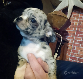 Subito disponibile maschio Merle, viene ceduto con vaccini chip iscrizione anagrafe canina Genitori visibili, papà pelo corto con pedigree enci, mamma pelo lungo Merle linea russa Native cresciuto in casa, ben socializzato