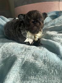 Bellissimo maschietto di chihuahua blu a pelo lungo.