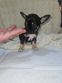 Disponibile in Allevamento bellissimo cucciolo nano di due mesi maschio a pelo corto di chihuahua con PEDIGREE ENCI. Si consegna in tutta Italia con doppia sverminazione, primo e secondo vaccino, libretto sanitario e visita veterinaria, microchip con relativo passaggio di proprietà e Pedigree Enci, inclusa consegna di persona. Allevamento Piccoli Cuccioli anche whatapp al 329 6954062