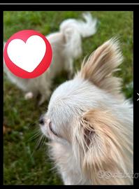 Bellissimo chihuahua maschio pelo lungo con pedigree Enci e DNA depositato linee di sangue thailandesi/Russe . Ottimo stalloncino corto compatto bianco/ crema riproduce piccolo . Piccolino pesa 1.4 kg. Tutto corretto e i suoi cuccioli sempre tutti corretti denti a forbice . Portatore dei colori bianco crema e Lilac. Disponibile per accoppiamento con chihuahua con o senza pedigree. Zona Udine Nord Tavagnacco . Per ulteriori informazioni telefonare o scrivere al numero 3403920846