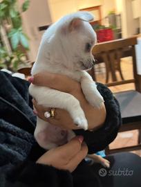 Bellissimo chihuahua bianco piccola taglia, nato il 9 gennaio, pronto per una nuova famiglia dopo il 15 marzo. Sverminato, primo vaccino fatto, madre visibile in foto , di mia proprietà.
