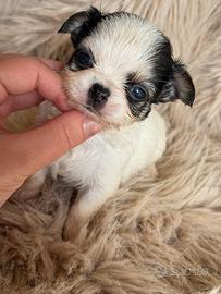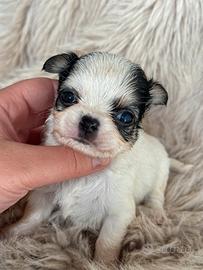 meraviglioso Cucciolo di Chihuahua bianco Tricolore gene pezzato pelo Lungo