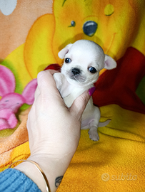 Disponibili alla vendita cuccioli di chihuahua aolo maschi pelo corto sia bianchi che fulvo i cuccioli vengono consegnati a due mesi con primo vaccino microchip registrazione ENCI a discrezione dell'acquirente i cuccioli sono abituati a sporcare sul faldone taglia piccola molto tipici a una razza genitori visibili per info foto contatto in privato arriviamo in tutta Italia
