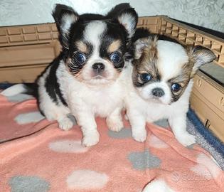Vendo due bellissimi cuccioli di chihuahua pelo lungo due mesi svezzati sverminati possono essere consegnati anche con libretto sanitario visita e certificato di buona salute i cuccioli sono abituati a sporcare sul faldone sono ben equilibrati e adatti in famiglia per altre foto informazioni o video contatto in privato