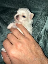 Vendo chihuahua maschio pelo lungo, bellissimo, il cucciolo verrà ceduto al raggiungimento di 2 mesi circa con sverminazione e vaccino . Peso stimato da adulto circa 1.8 /2 chili . Per ulteriori informazioni contattatemi . 3450704135