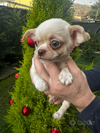 Disponibile maschio Chihuahua.Colore crema. Con il primo vaccino, microchip, libretto medico.Genitori nostri. Possiamo portare qualsiasi città.prezzo 750