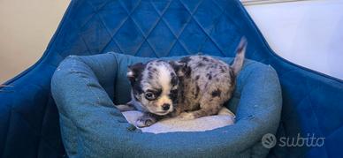 Allevamento professionale dispone di tenerissimo cucciolo di Chihuahua mini Merle maschio di 3 mesi che sarà consegnato con: ciclo vermifugo profilassi vaccinale libretto sanitario iscrizione anagrafe canina microchip inoculato certificato di buona salute possibilità di consegna in tutta Italia possibilità di rateizzare l'importo in 12 rate Per qualsiasi informazione non esitate a contattarci per fissare un appuntamento di persona o tramite videochiamata. Per visionare i cuccioli è consigliabile fissare un appuntamento. WhatsApp: 3792481533 Indirizzo sede: Via Enrico Berlinguer n.14 Scafati (SA)