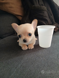 Chihuahua toy taglia piccolissimo da adulto un kilo e 6 di due mesi di vita Svezzato e sverminato Si cede con vaccino e libretto sanitario Abituato alla traversina Solo persone amanti animali No perditempo No affaristi ....