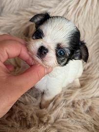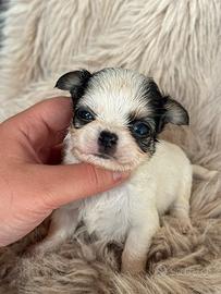 meraviglioso Cucciolo di Chihuahua bianco Tricolore gene pezzato pelo Lungo