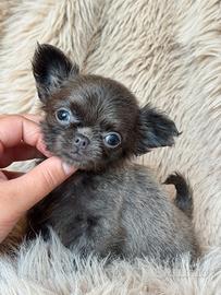 Chihuahua cucciolo maschio Due mesi pelo lungo grigio Taglia molto piccola Viene consegnato con pedigree enci libretto sanitario Sverminazioni esame feci vaccino microchip certificato di buona salute kit cucciolo Genitori visibili