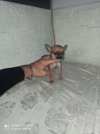 Maschietto di chihuahua mini Toy di 2 mesi nato in casa, padre chiwawa mini toy peso 1.5 kg. Mamma ciwawa Toy peso 1.8 kg. Il cucciolo da adulto non supererà i 2 chili di peso corporeo, si cede completamente sverminato e con primo vaccino e libretto sanitario che attesta la ottima salute del cucciolo, abituato alla traversina, cedo solo a persone serie e amanti degli animali grazie.