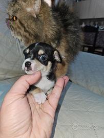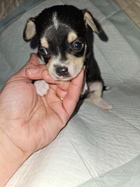Disponibile in Allevamento cucciolo di chihuahua tricolore nero/bianco/crema che si consegna adue mesi, a febbraio. Consegna effettuata di PERSONA in tutta ITALIA.