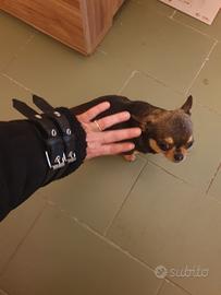 Vendo maschio chihuahua mini toy da borsetta pesa 1.300 kg ha 1 anno e 8 mesi cagnolino da borsetta, viene ceduto vaccinato, microchip, libretto sanitario e pedegree enci. Lo posso portare anche a domicilio l'importante che vada in buone mani. Tel 327 54 28 399 cortesemente no perditempo . Prezzo 800 euro.