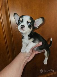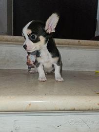 Disponibile in Allevamento Cucciolisole bellissimo cucciolo di chihuahua tricolore a pelo corto pronto a due mesi. I nostri cuccioli nascono e crescono in casa con l'amore di tutta la famiglia, sono socializzati con altri cani e gatti e amano giocare con I bambini... Il cucciolo avrà doppia sverminazione, primo e secondo vaccino, libretto sanitario e visita veterinaria, trattamento antiparassitario, microchip con relativo passaggio di proprietà, inclusa consegna che facciamo di PERSONA in tutta ITALIA.