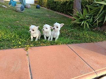 Cuccioli di ciwawa di 2 mesi, di taglia piccolissima, disponibili sia maschi che femmine, sverminati,con prima vaccinazione, microchip, passaggio di proprietà e libretto sanitario, per altre info, foto e video solo contatti telefonici o whatsapp al 336856322