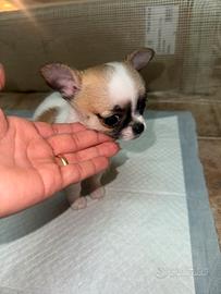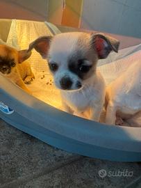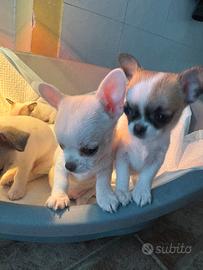 Vendo cucciole di chihuahua di piccola taglia di 60 giorni, peso massimo 2,5 kg di 60 giorni. Sverminate, primo vaccino effettuate, svezzate e utilizzano la traversina. Colori total white, beije e bianco. Per info contattare al n.3347833861