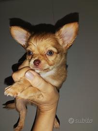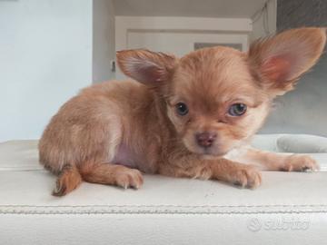 Chihuahua occhi verdi! Pelo lungo, Pedegree Enci, vaccini e regolari controlli veterinari. Nato il 23 gennaio, dolce, coccolone pronto ad una nuova casa da fine aprile. A Milano.