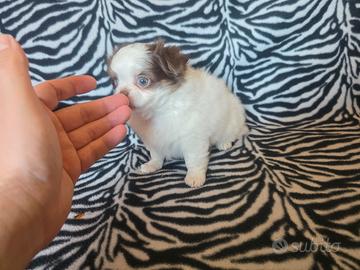 Chihuahua Maschio Pelo Lungo bianco cioccolato occhi chiari Madre 2kg padre 1.6kg Colorazione Magnifica ... Nome Dior 70 giorni Pelo foltissimo una nuvola di pelo . La cucciola ha un carattere meraviglioso... Bellissima testa a mela, zampa corta. muso inesistente. Una vera meraviglia di madre natura dimensione mini Viene consegnato con : * Vaccinazione *Sverminazzioni completate *Microchip Italiano no (estero) * Certificato medico di buona salute *Kit alimentazione specifico Per ulteriori informazioni contattare Al 327 95 49 884 Giuseppe