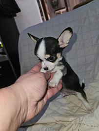 Disponibile in Allevamento Cucciolisole bellissimo cucciolo di chihuahua tricolore nano pronto per la consegna, ha compiuto due mesi. I nostri cuccioli nascono e crescono in casa con l'amore di tutta la famiglia, sono socializzati con altri cani e gatti e amano giocare con I bambini... Il cucciolo avrà doppia sverminazione, primo e secondo vaccino, libretto sanitario e visita veterinaria, trattamento antiparassitario, microchip con relativo passaggio di proprietà, inclusa consegna che facciamo di PERSONA in tutta ITALIA.