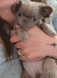Vendo cucciolo maschio di chihuahua originale peso 700 grammi ora colore Lilac molto raro nato 18/12/2025 ( 3 mesi),preso in allevamento con microchip e pedigree ENCI, vaccini fatti 2 e fatto per vermi il trattamento.abituato a fare bisogni in traversina non in regalo!!!! Lo tolgo solo per allergia di un componente della famiglia scoperto ora.... Foto dei genitori in foto non supera i 2.2 kg piccolo Nato il 18/12/2025 ha 3 mesi il cucciolo giocarellore e con i bambini e meraviglioso a malincuore lo devo togliere... Solo veri interessati non perdo tempo se siete interessati qu alsiasi cosa potete chiedere non affaristi non. E' in regalo.